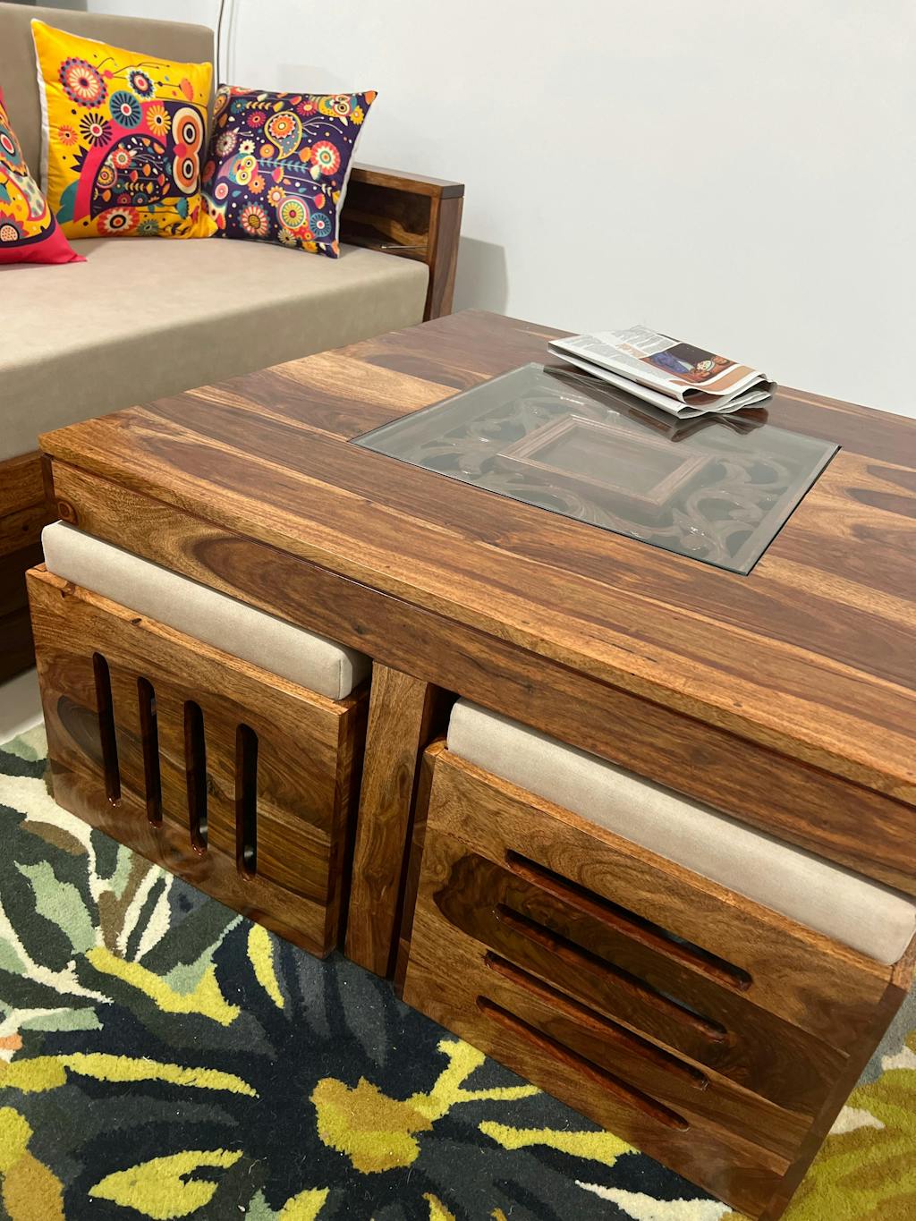 Furniture products having intricate and hand-painted details have been meticulously created by skilled craftsmen, following on the footsteps of several generations of accomplished artisans. Each piece of such Furniture is, thus, unique, and there is a possibility of slight differences between the picture and the actual product.