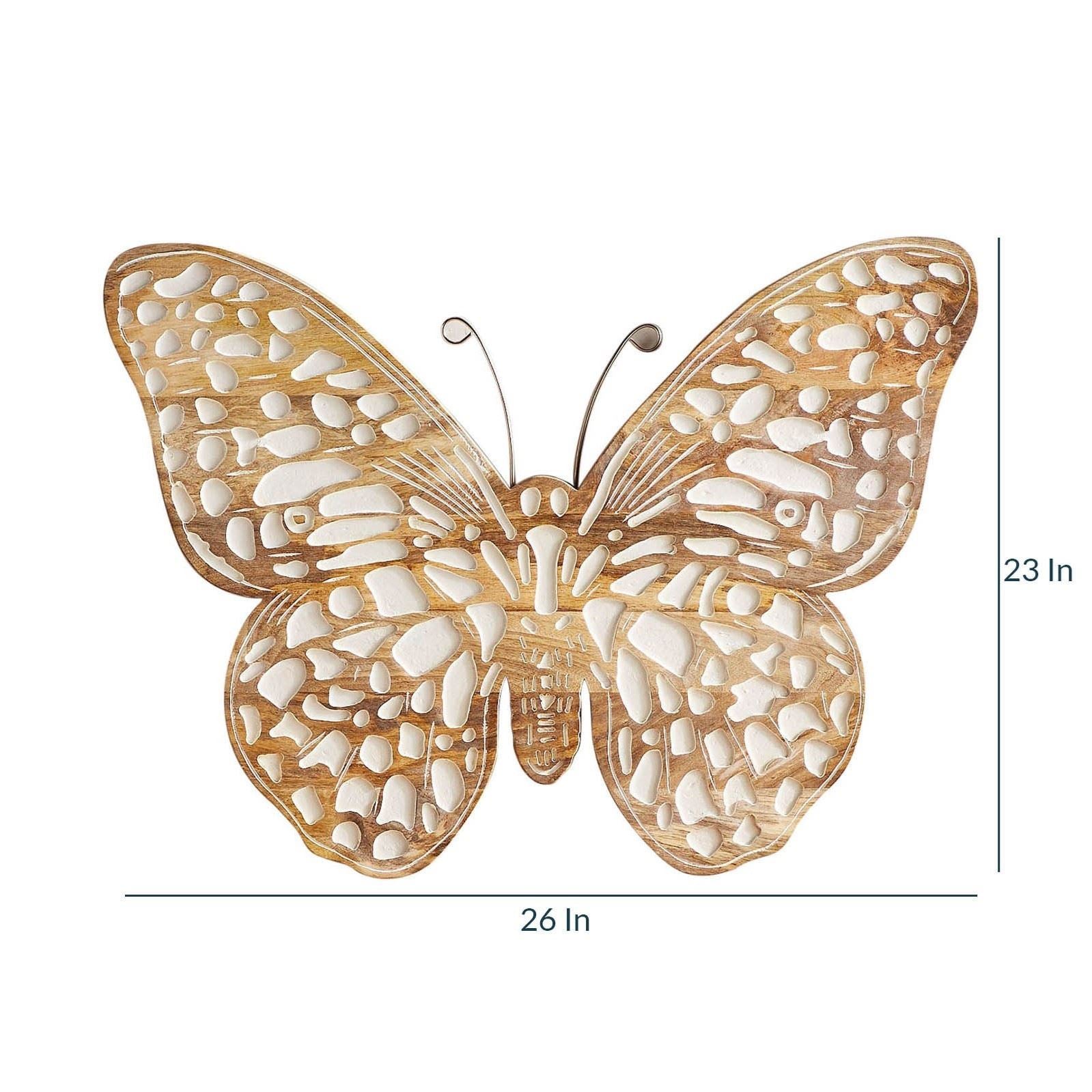 Natural Wood and White Accent Butterfly Wall Decor