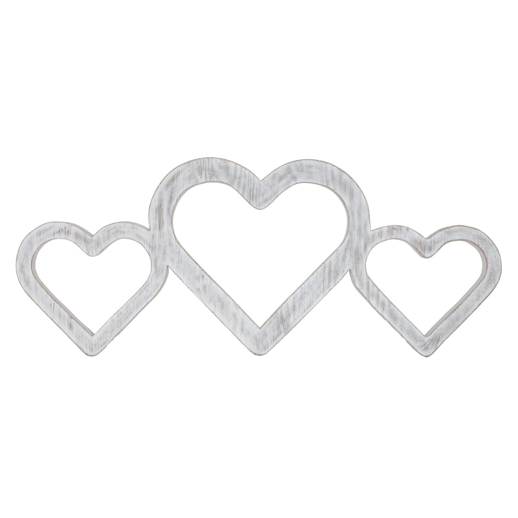 Large Whitewashed Triple Heart Wood Rustic Farmhouse Love Accent for Wall or Shelf