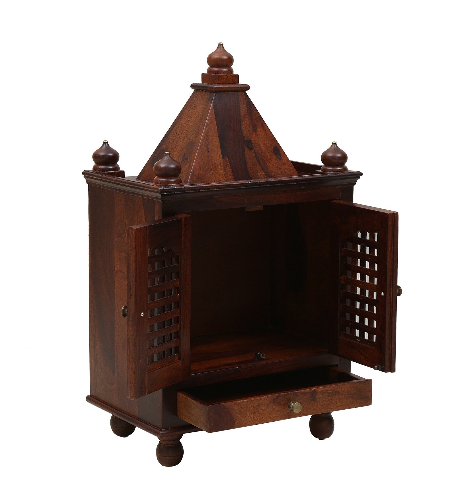Sheesham Wood Mandir with Door | Floor Rested Home Temple