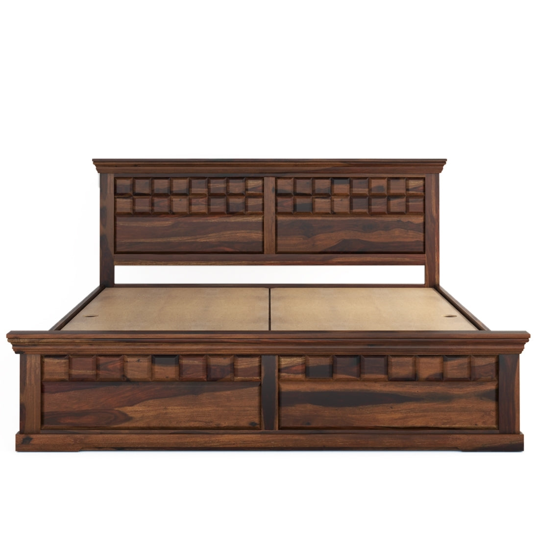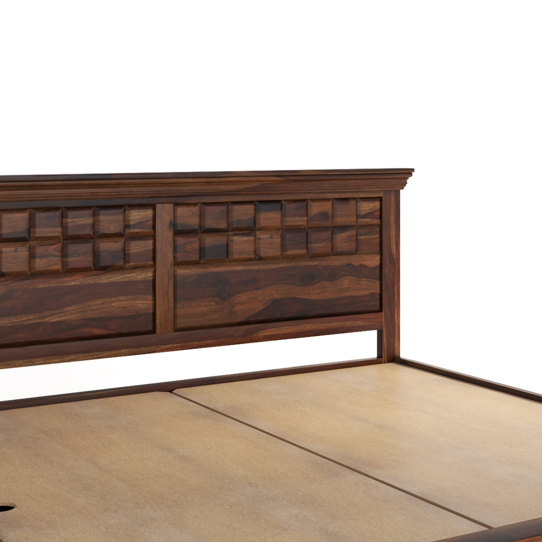 Built for comfort and convenience, the sturdy wooden slats provide superior mattress support and ensure restful sleep. Resistant to termites and moisture, this bed promises strength and timeless charm. A perfect blend of aesthetic appeal, space efficiency, and craftsmanship, this Sheesham wood bed brings warmth, style, and smart functionality to your home