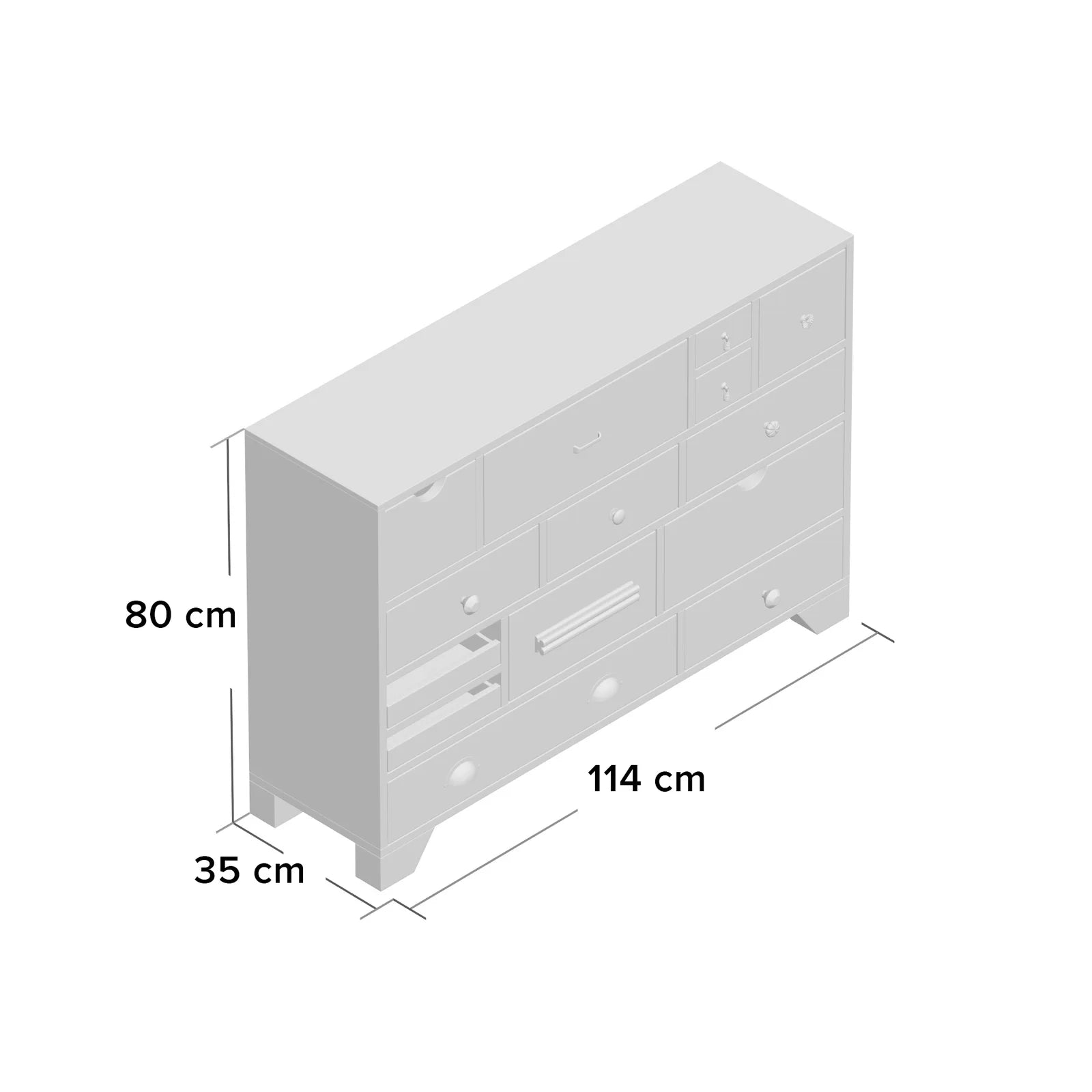 - Unique 13-Drawer Configuration: Features thirteen drawers of varied shapes and sizes, maximizing organizational flexibility.