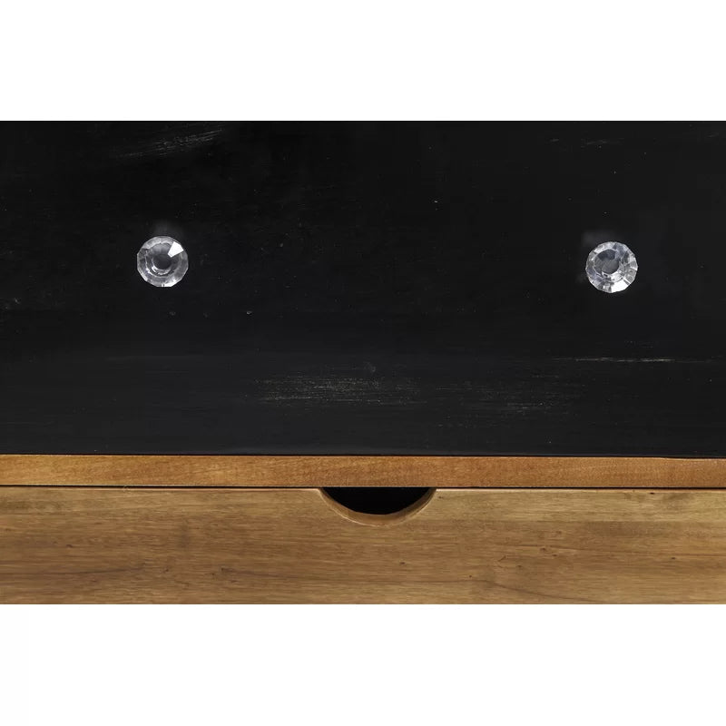 No two drawers are alike! You'll find a lively mix of crisp white, distressed black, natural wood, and a striking turquoise or teal accent, each fitted with unique hardware—from classic cup pulls and sleek bar handles to simple integrated cutouts. This intentional variation creates a dynamic, layered look that makes the chest an instant focal point in any room.
